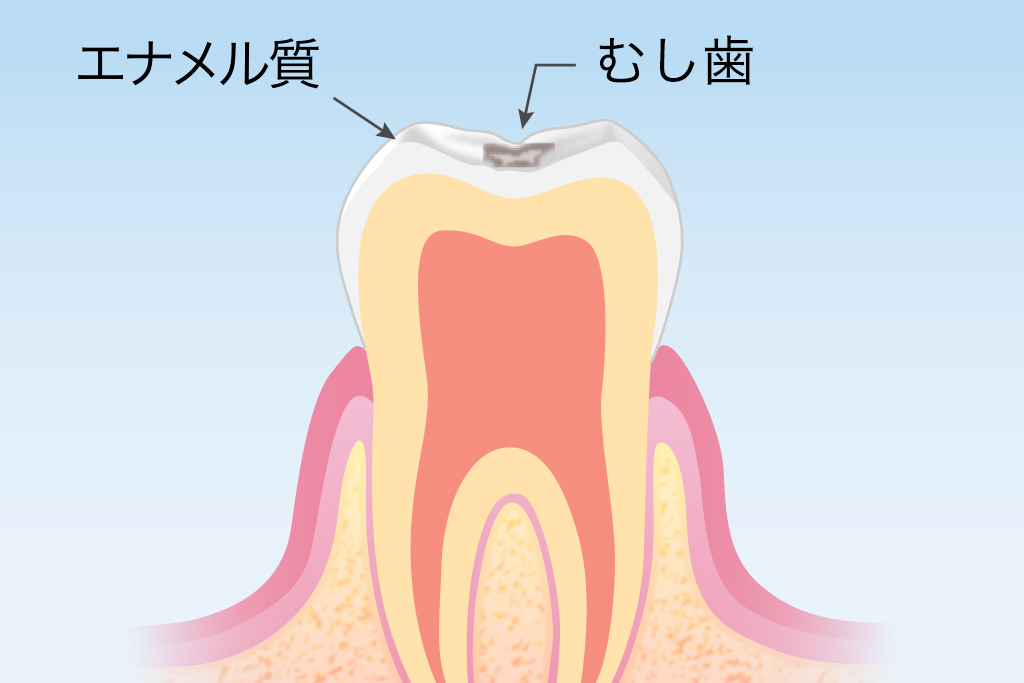 むし歯(虫歯)は、歯の硬い組織が細菌によって破壊された病態です。