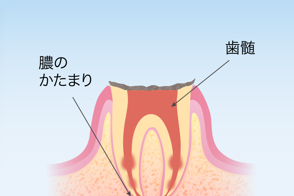 神経が死んでいるため痛みはありませんが、感染が顎の骨まで広がると全身に悪影響を及ぼすことがあります。